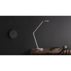 Waldmann Schreibtischlampe Lucio Neutralweiß, Dimmbar, USB, Standfuß, Doppelgelenkarm, Titan
